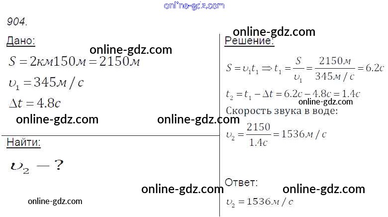 Готовые домашние задания по Физике за 7, 8, 9 класс Сборник задач Лукашик, Иванова 2011 - Задания 904