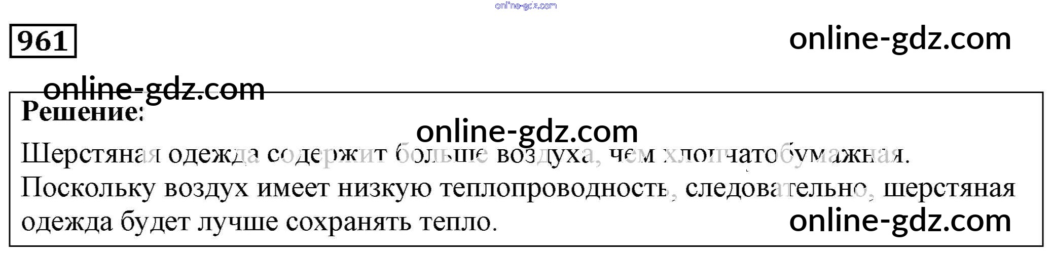 Готовые домашние задания по Физике за 7, 8, 9 класс Сборник задач Лукашик, Иванова 2011 - Задания 961
