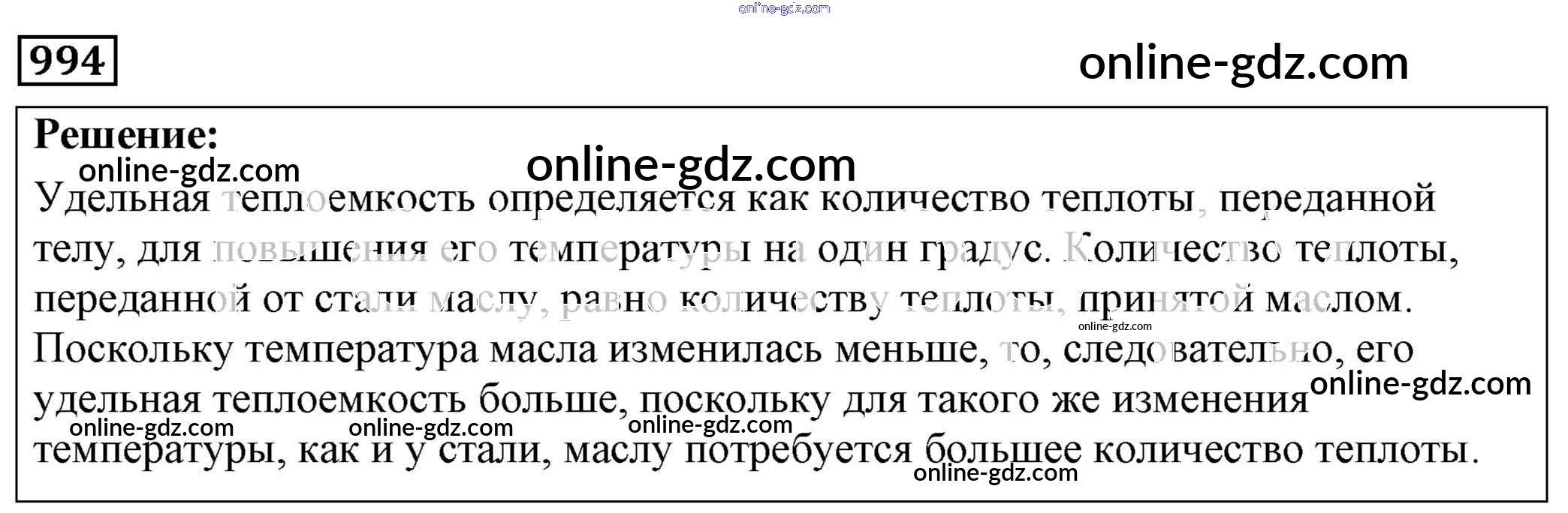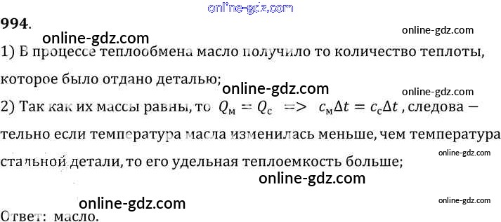Готовые домашние задания по Физике за 7, 8, 9 класс Сборник задач Лукашик, Иванова 2011 - Задания 994
