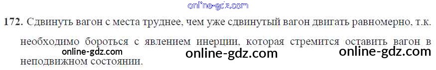 Готовые домашние задания по Физике за 7, 8, 9 класс Сборник задач Перышкин, Лонцова УМК 2016 - Взаимодействие тел 7 класс 172