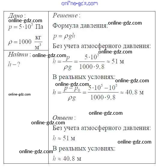 Готовые домашние задания по Физике за 7, 8, 9 класс Сборник задач Перышкин, Лонцова УМК 2016 - Давление твердых тел, жидкостей и газов 7 класс 416