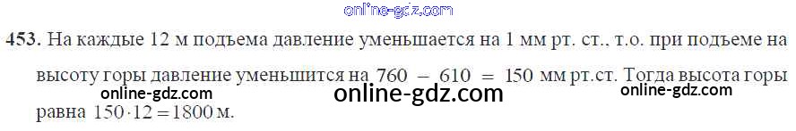 Готовые домашние задания по Физике за 7, 8, 9 класс Сборник задач Перышкин, Лонцова УМК 2016 - Давление твердых тел, жидкостей и газов 7 класс 453