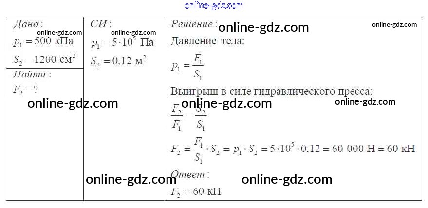 Готовые домашние задания по Физике за 7, 8, 9 класс Сборник задач Перышкин, Лонцова УМК 2016 - Давление твердых тел, жидкостей и газов 7 класс 466