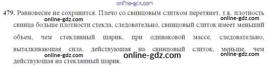 Готовые домашние задания по Физике за 7, 8, 9 класс Сборник задач Перышкин, Лонцова УМК 2016 - Давление твердых тел, жидкостей и газов 7 класс 479
