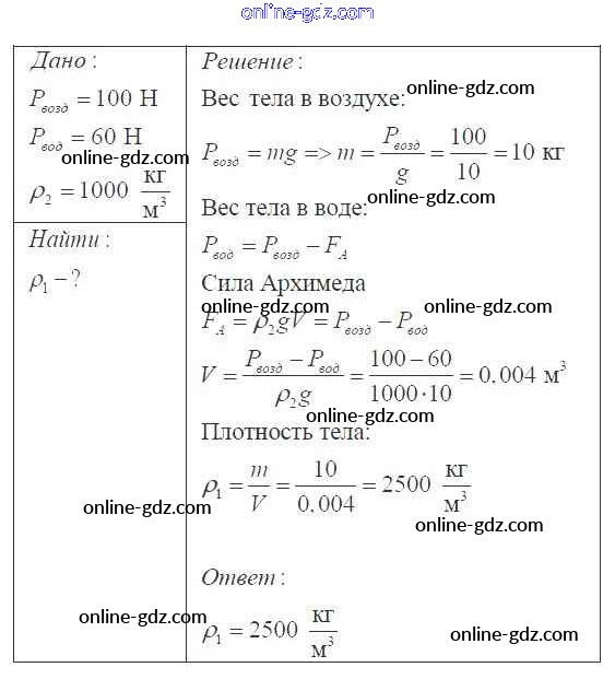 Готовые домашние задания по Физике за 7, 8, 9 класс Сборник задач Перышкин, Лонцова УМК 2016 - Давление твердых тел, жидкостей и газов 7 класс 499