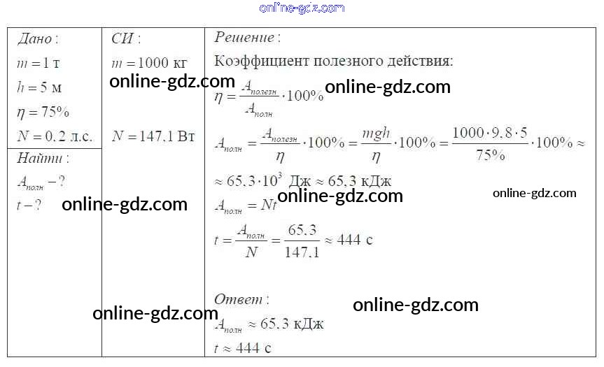 Готовые домашние задания по Физике за 7, 8, 9 класс Сборник задач Перышкин, Лонцова УМК 2016 - Работа и мощность. Энергия 7 класс 617
