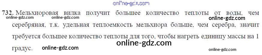 Готовые домашние задания по Физике за 7, 8, 9 класс Сборник задач Перышкин, Лонцова УМК 2016 - Тепловые явления 8 класс 732