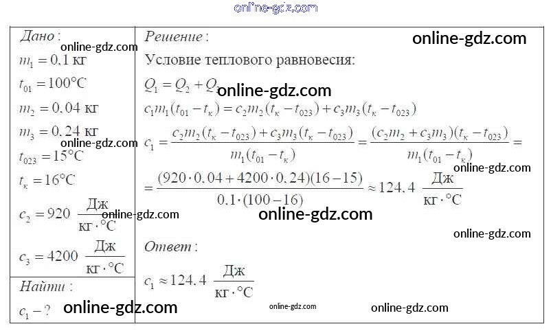 Готовые домашние задания по Физике за 7, 8, 9 класс Сборник задач Перышкин, Лонцова УМК 2016 - Тепловые явления 8 класс 782
