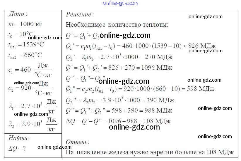 Готовые домашние задания по Физике за 7, 8, 9 класс Сборник задач Перышкин, Лонцова УМК 2016 - Тепловые явления 8 класс 851