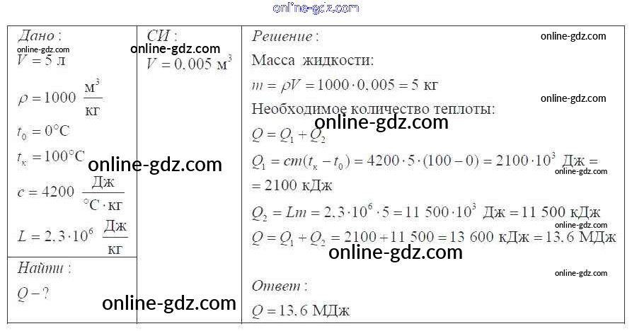 Готовые домашние задания по Физике за 7, 8, 9 класс Сборник задач Перышкин, Лонцова УМК 2016 - Тепловые явления 8 класс 881