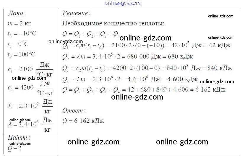 Готовые домашние задания по Физике за 7, 8, 9 класс Сборник задач Перышкин, Лонцова УМК 2016 - Тепловые явления 8 класс 894