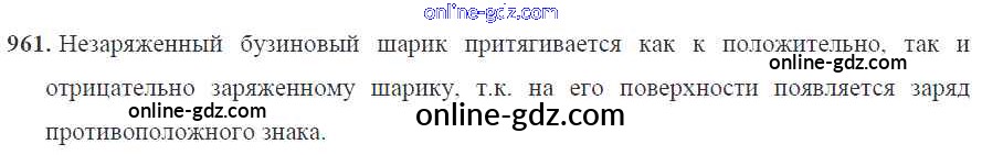 Готовые домашние задания по Физике за 7, 8, 9 класс Сборник задач Перышкин, Лонцова УМК 2016 - Электрические явления 8 класс 961