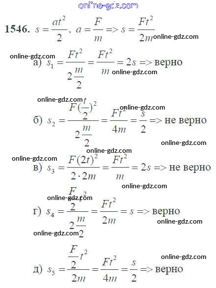 Готовые домашние задания по Физике за 7, 8, 9 класс Сборник задач Перышкин, Лонцова УМК 2016 - Законы взаимодействия и движения тел 9 класс 1546