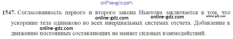 Готовые домашние задания по Физике за 7, 8, 9 класс Сборник задач Перышкин, Лонцова УМК 2016 - Законы взаимодействия и движения тел 9 класс 1547