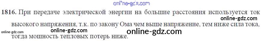 Готовые домашние задания по Физике за 7, 8, 9 класс Сборник задач Перышкин, Лонцова УМК 2016 - Электромагнитное поле 9 класс 1816