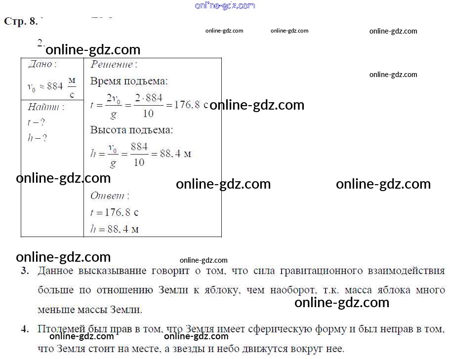 Готовые домашние задания по Физике за 9 класс Тетрадь-тренажер Артеменков, Белага Сферы 2011 - Страницы 8