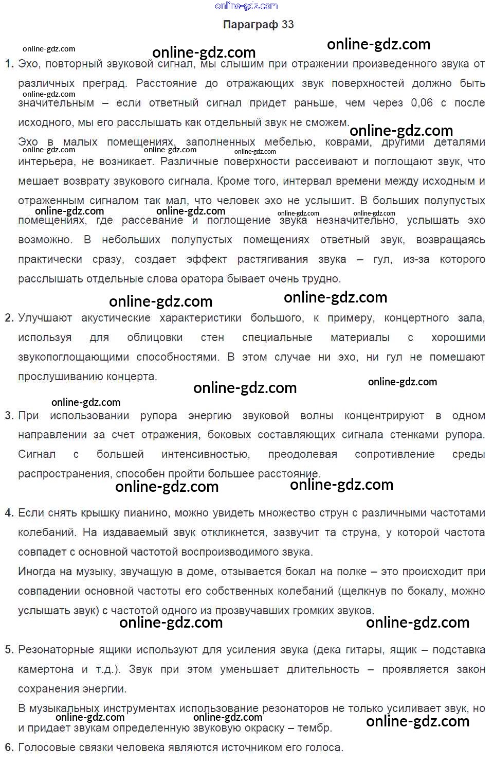 Готовые домашние задания по Физике за 9 класс Учебник Перышкин, Гутник 2014 - Параграфы Новое издание 33