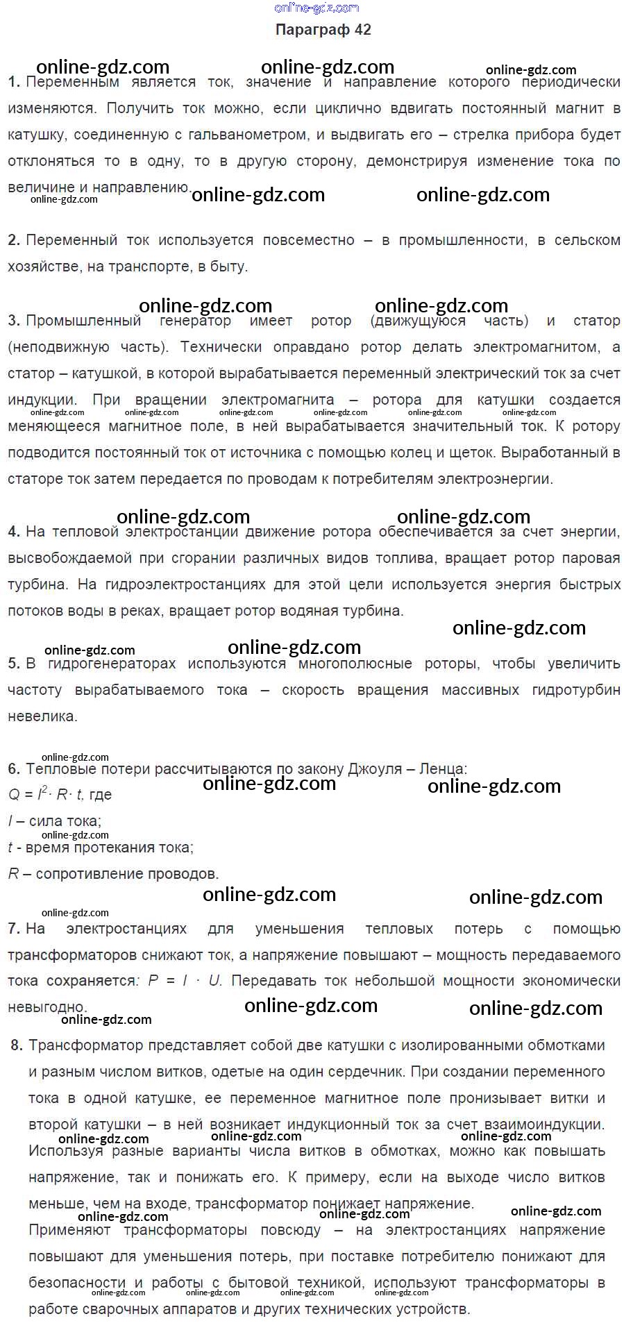 Готовые домашние задания по Физике за 9 класс Учебник Перышкин, Гутник 2014 - Параграфы Новое издание 42