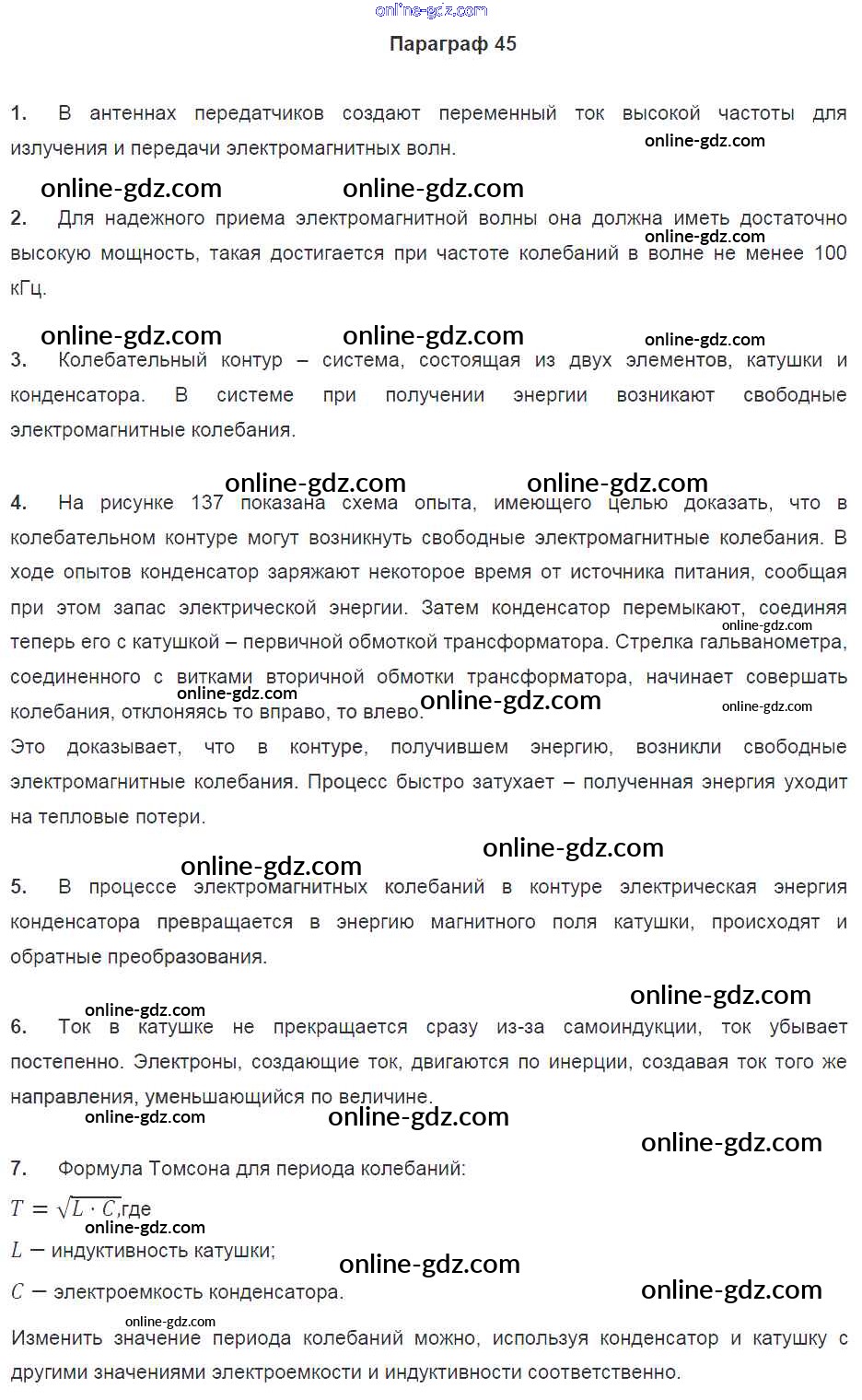 Готовые домашние задания по Физике за 9 класс Учебник Перышкин, Гутник 2014 - Параграфы Новое издание 45