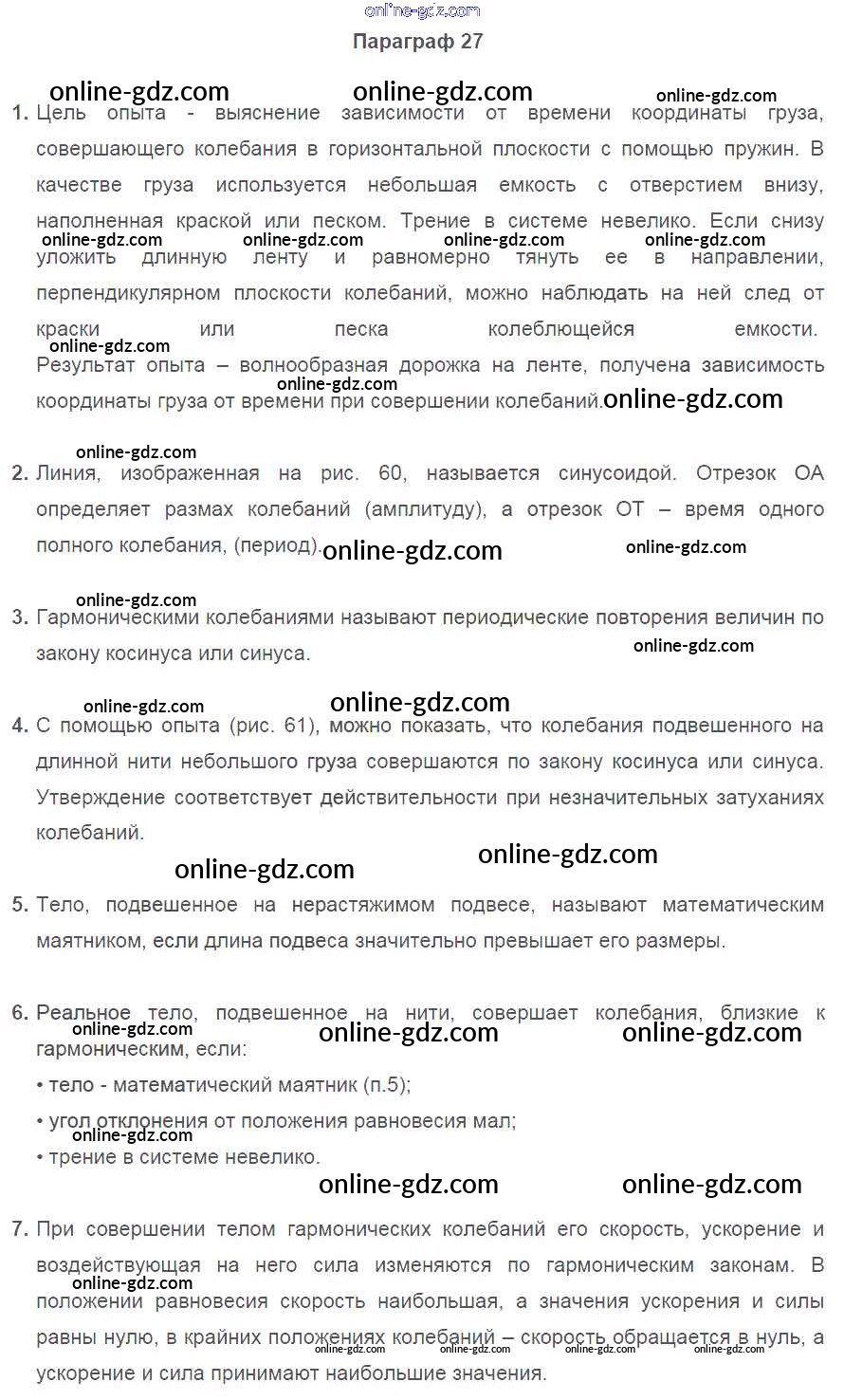 Готовые домашние задания по Физике за 9 класс Учебник Перышкин, Гутник 2014 - Параграфы Старое издание (Синий учебник) 27