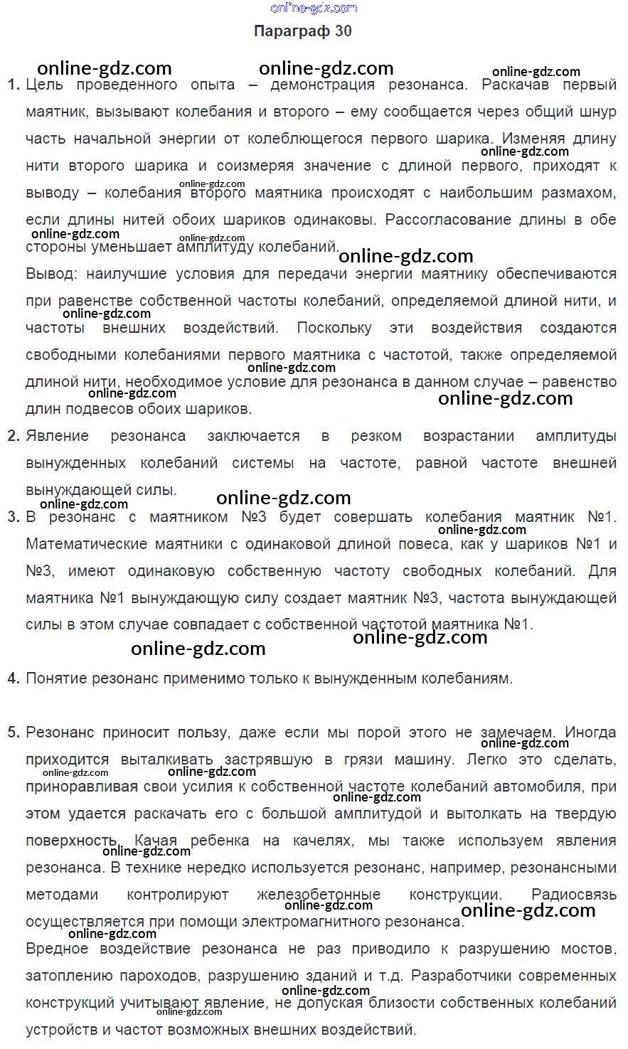 Готовые домашние задания по Физике за 9 класс Учебник Перышкин, Гутник 2014 - Параграфы Старое издание (Синий учебник) 30