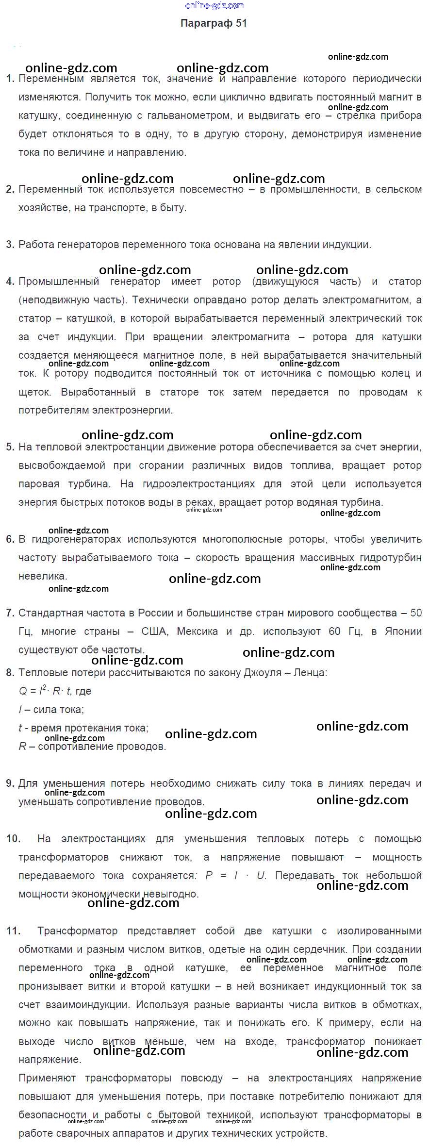 Готовые домашние задания по Физике за 9 класс Учебник Перышкин, Гутник 2014 - Параграфы Старое издание (Синий учебник) 51