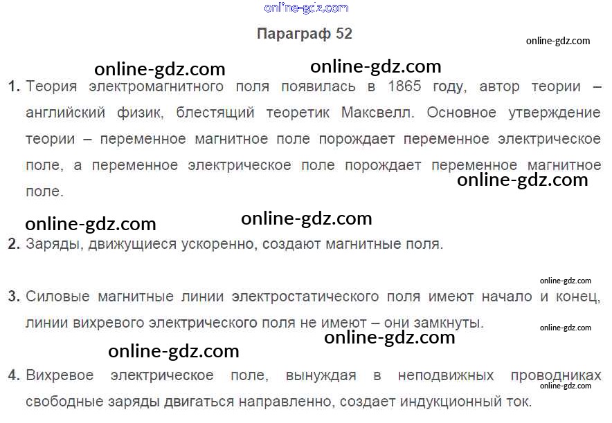 Готовые домашние задания по Физике за 9 класс Учебник Перышкин, Гутник 2014 - Параграфы Старое издание (Синий учебник) 52