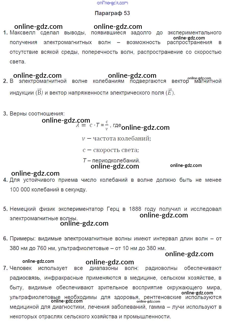 Готовые домашние задания по Физике за 9 класс Учебник Перышкин, Гутник 2014 - Параграфы Старое издание (Синий учебник) 53