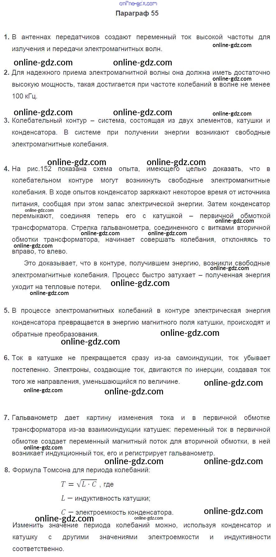 Готовые домашние задания по Физике за 9 класс Учебник Перышкин, Гутник 2014 - Параграфы Старое издание (Синий учебник) 55