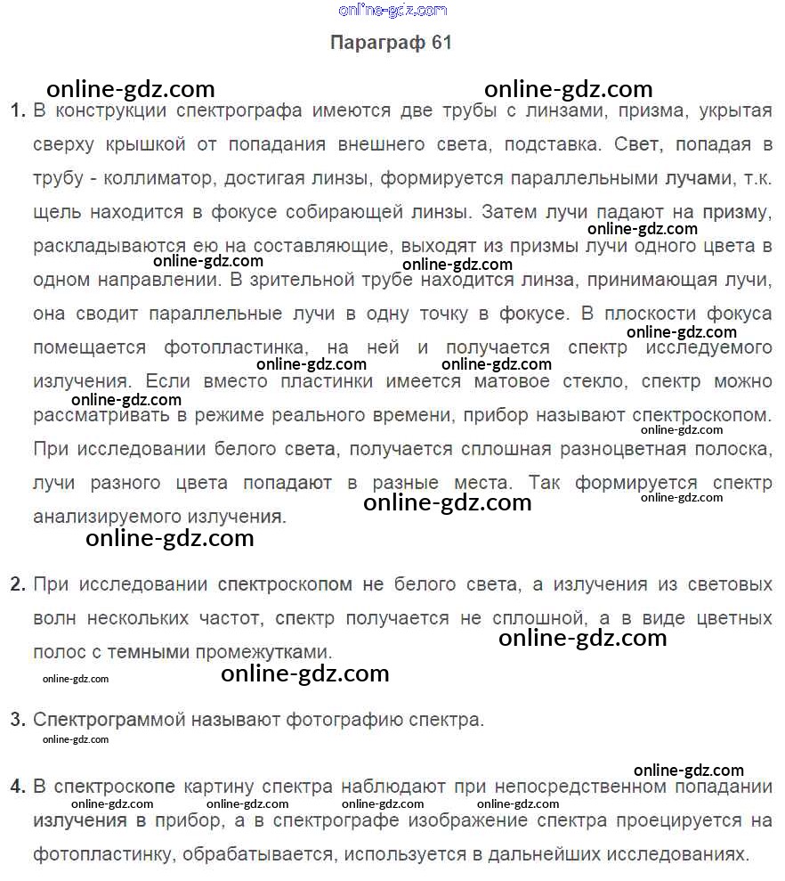 Готовые домашние задания по Физике за 9 класс Учебник Перышкин, Гутник 2014 - Параграфы Старое издание (Синий учебник) 61