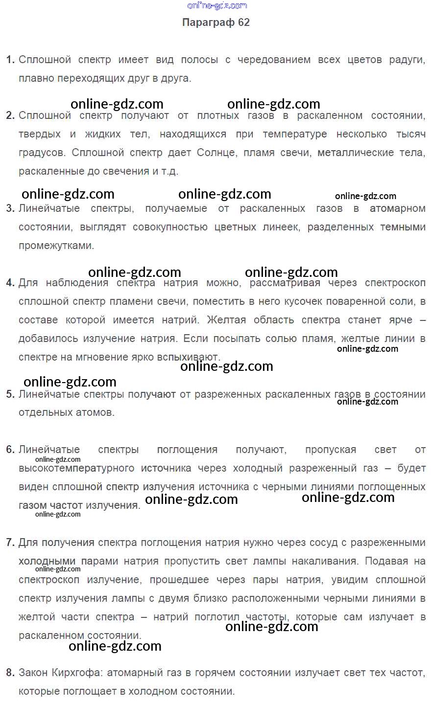 Готовые домашние задания по Физике за 9 класс Учебник Перышкин, Гутник 2014 - Параграфы Старое издание (Синий учебник) 62