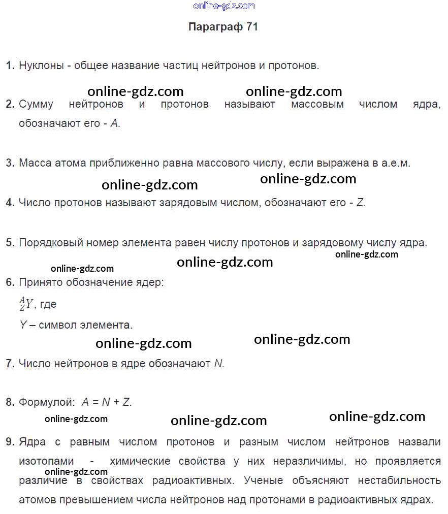 Готовые домашние задания по Физике за 9 класс Учебник Перышкин, Гутник 2014 - Параграфы Старое издание (Синий учебник) 71