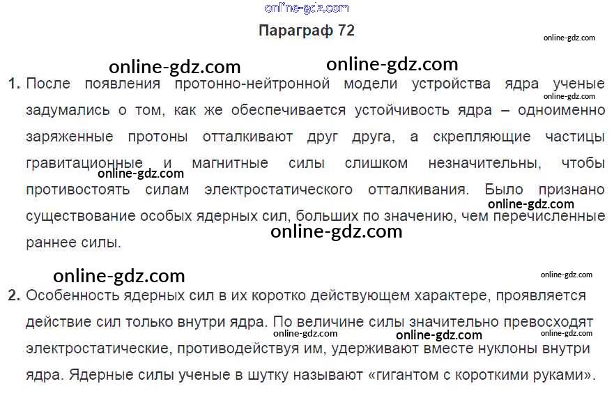 Готовые домашние задания по Физике за 9 класс Учебник Перышкин, Гутник 2014 - Параграфы Старое издание (Синий учебник) 72