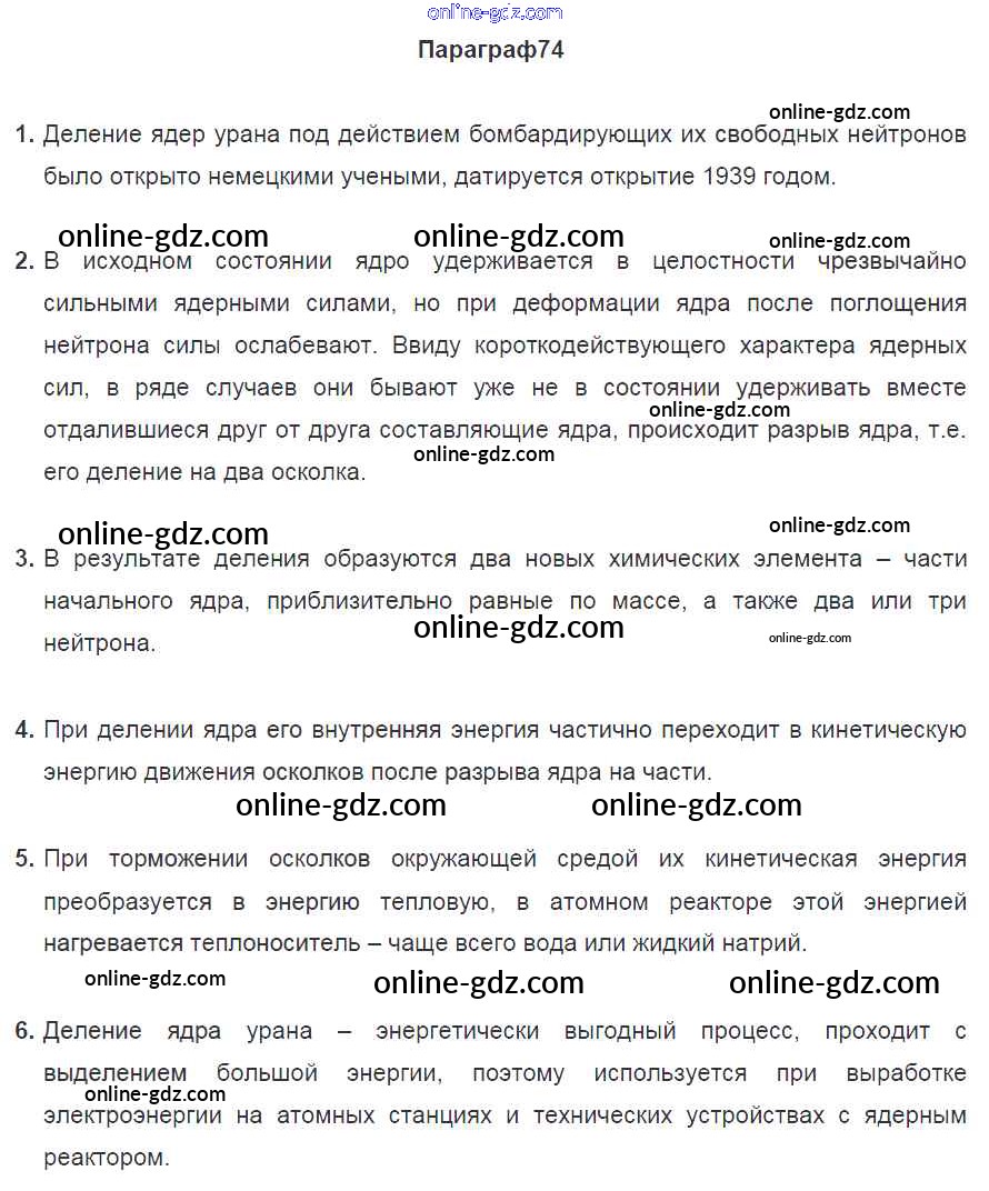 Готовые домашние задания по Физике за 9 класс Учебник Перышкин, Гутник 2014 - Параграфы Старое издание (Синий учебник) 74