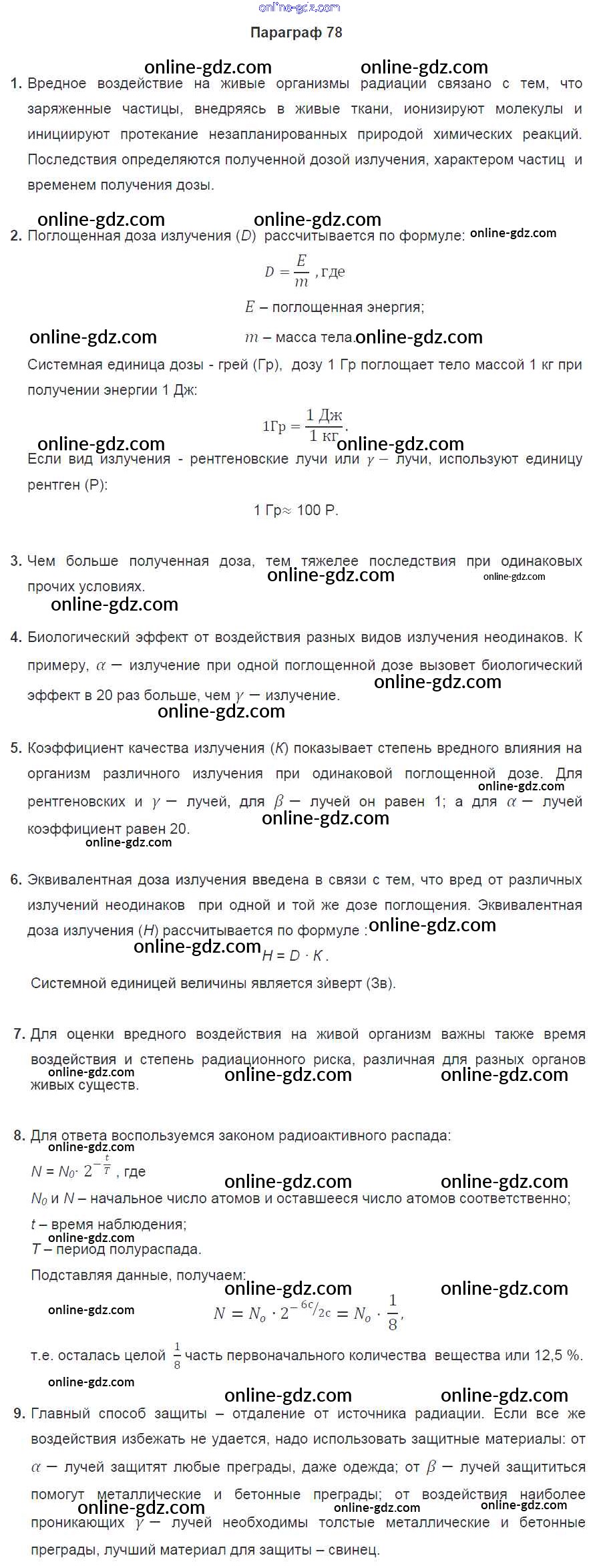 Готовые домашние задания по Физике за 9 класс Учебник Перышкин, Гутник 2014 - Параграфы Старое издание (Синий учебник) 78