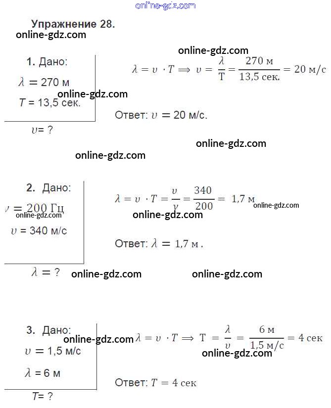 Готовые домашние задания по Физике за 9 класс Учебник Перышкин, Гутник 2014 - Упражнения Старое издание (Синий учебник) 28