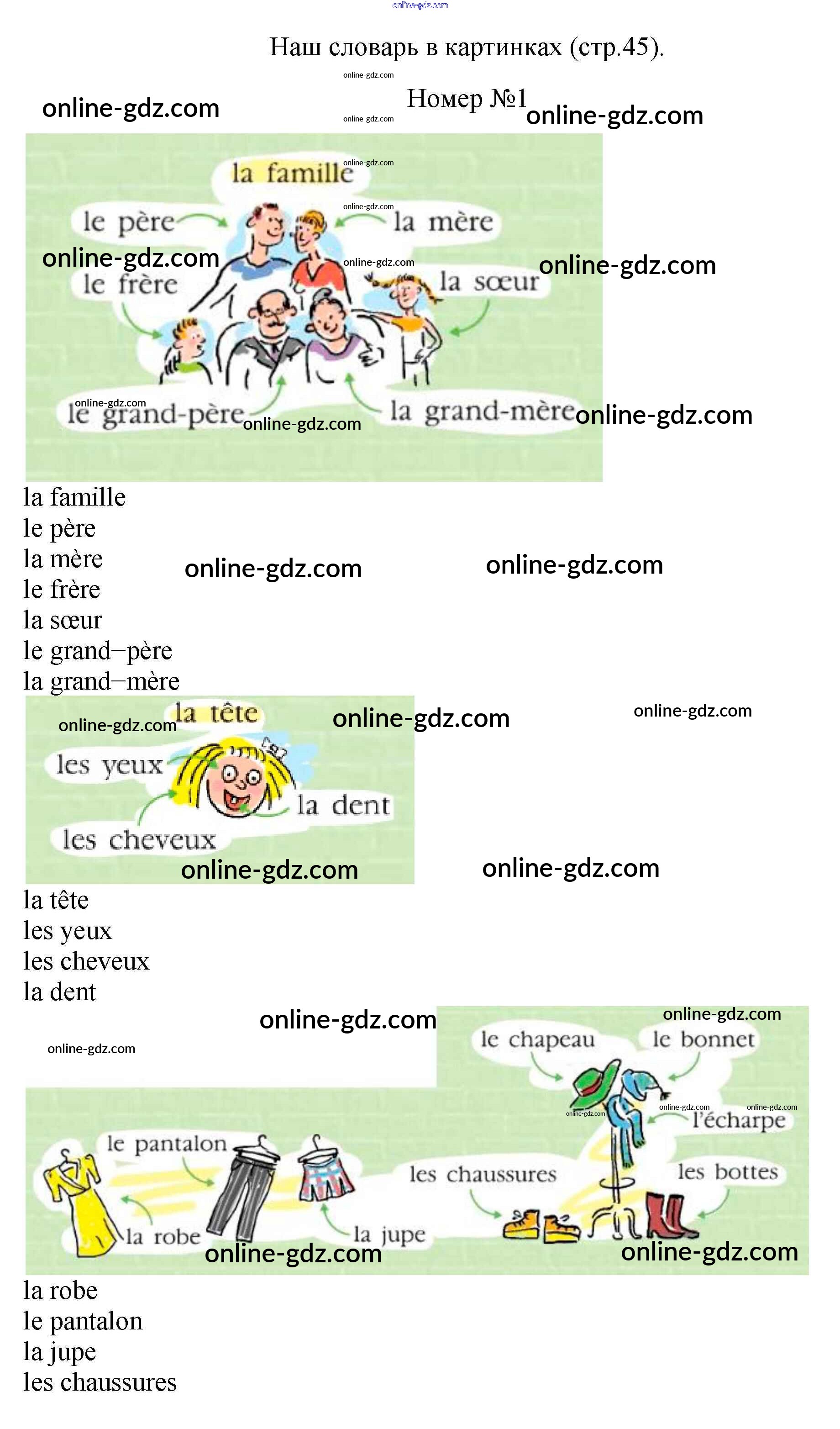 Готовые домашние задания по Французскому языку за 5 класс Учебник Береговская, Белосельская Синяя птица 2021 - Часть 1. Страницы 45