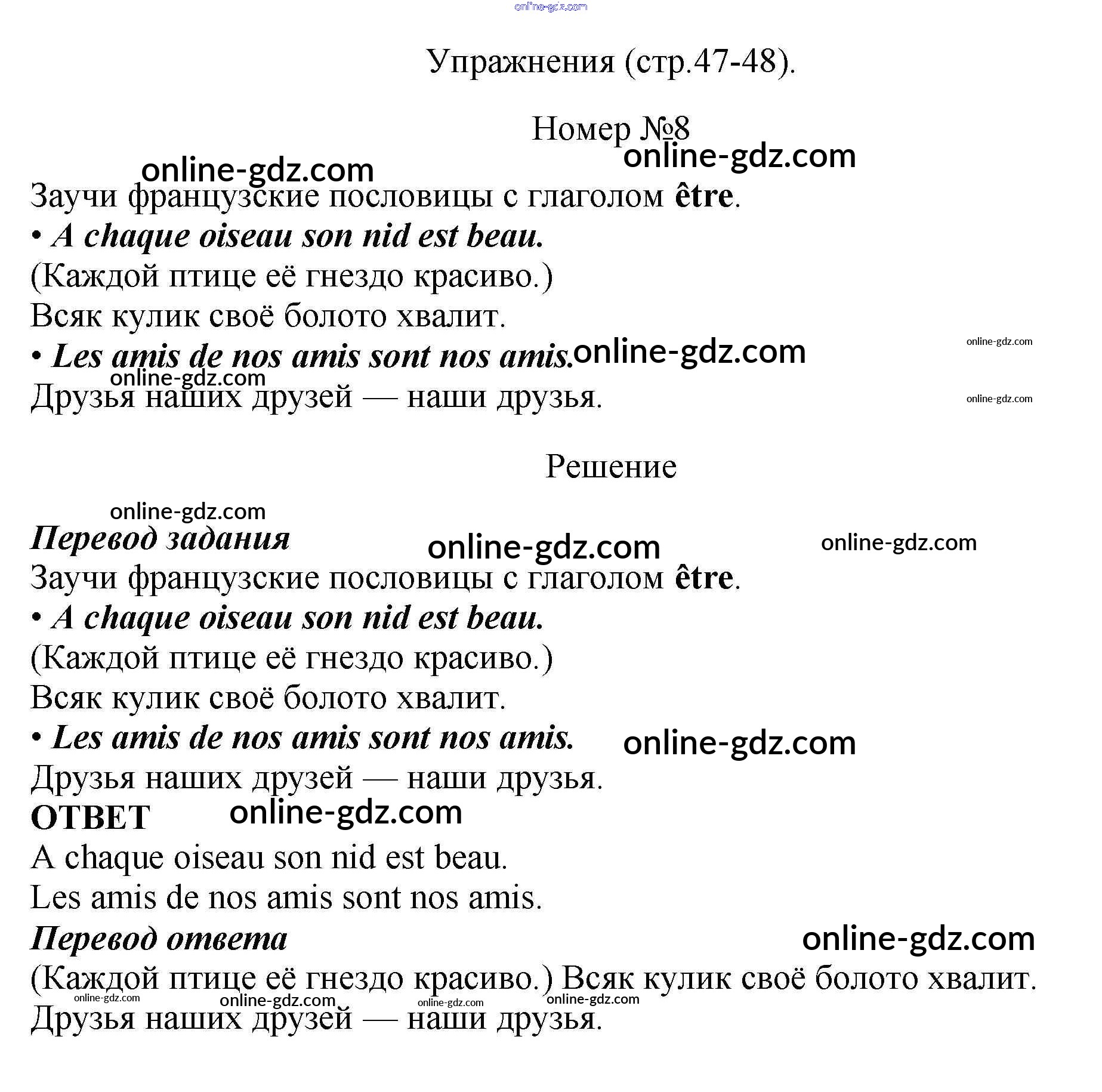 Готовые домашние задания по Французскому языку за 5 класс Учебник Береговская, Белосельская Синяя птица 2021 - Часть 1. Страницы 47