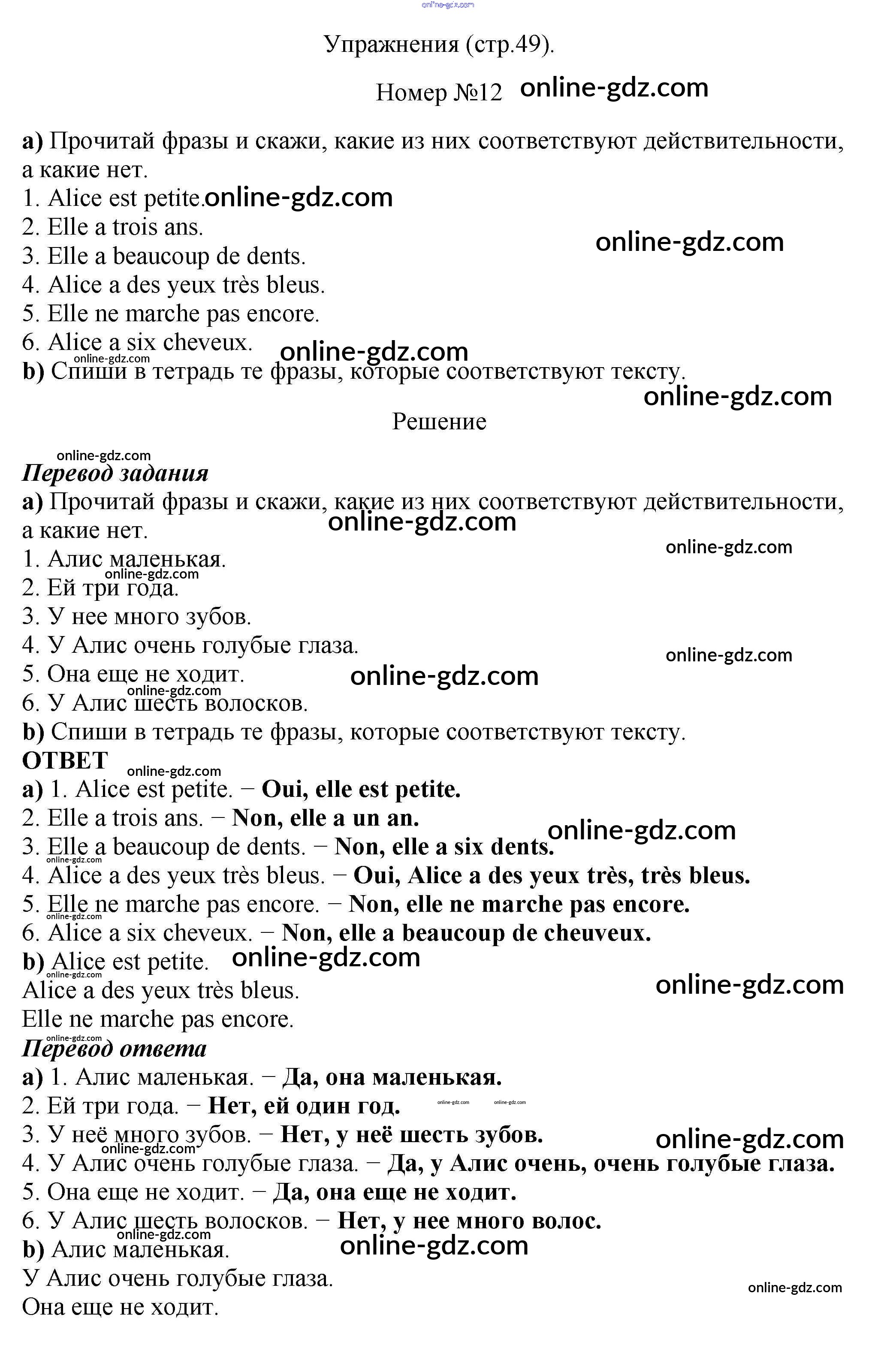 Готовые домашние задания по Французскому языку за 5 класс Учебник Береговская, Белосельская Синяя птица 2021 - Часть 1. Страницы 49