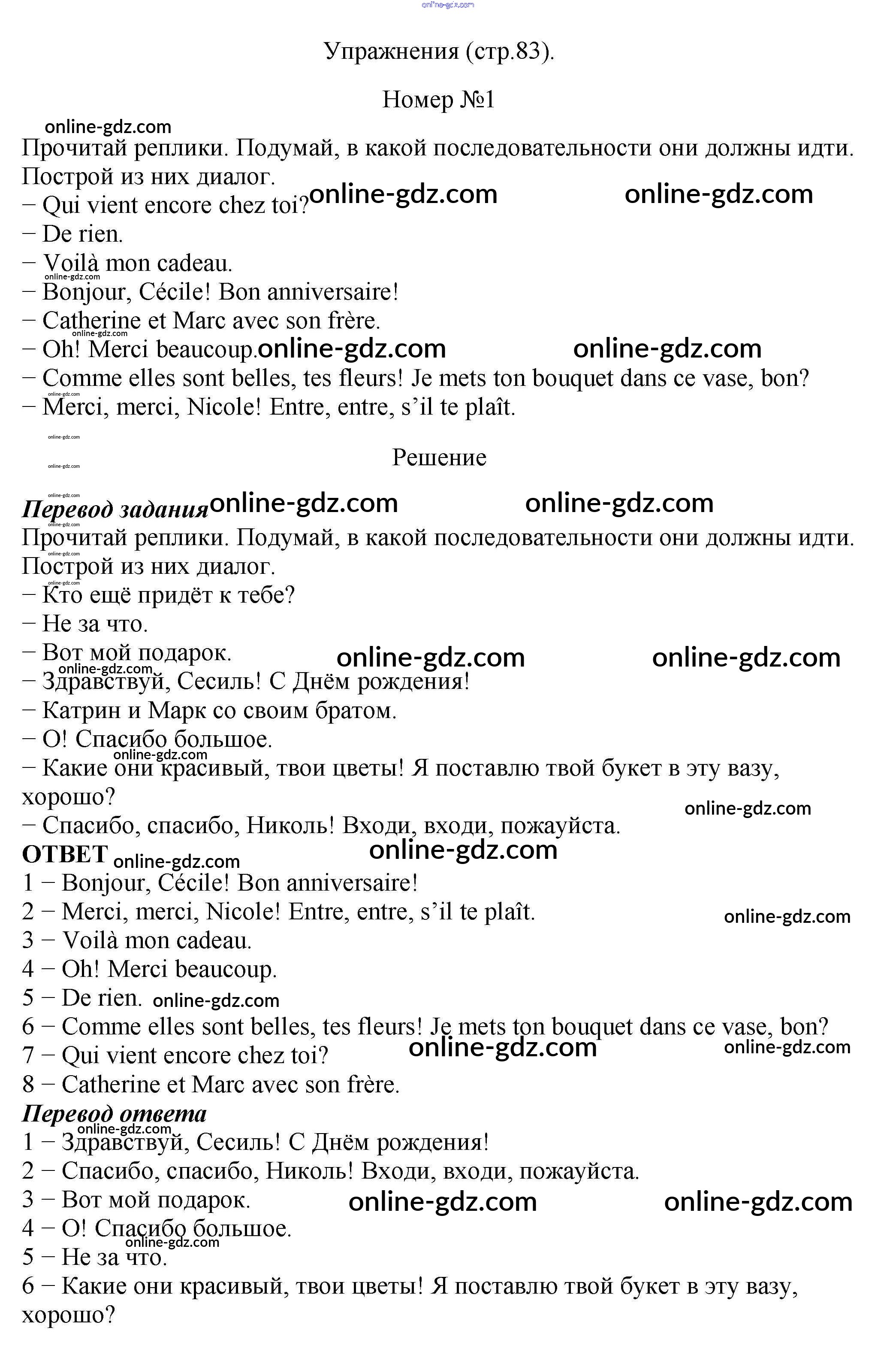 Готовые домашние задания по Французскому языку за 5 класс Учебник Береговская, Белосельская Синяя птица 2021 - Часть 1. Страницы 83