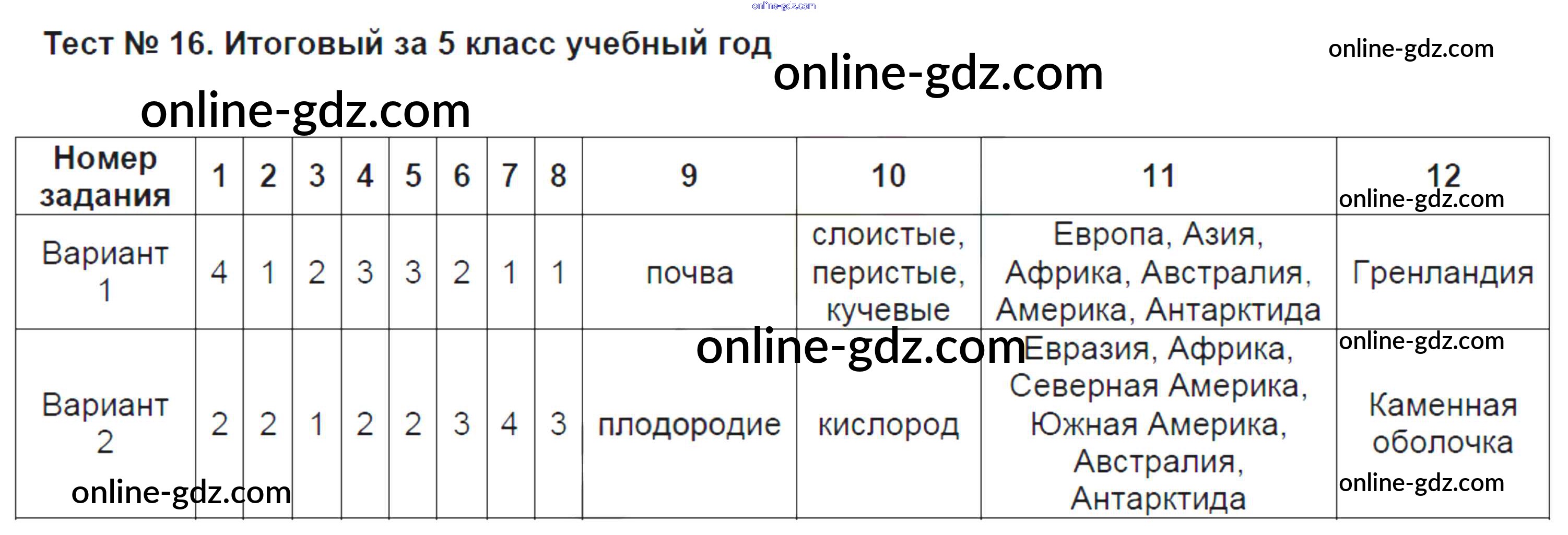 Готовые домашние задания по Географии за 5 класс Контрольно-измерительные материалы (КИМ) Жижина 2018 - Тесты 16