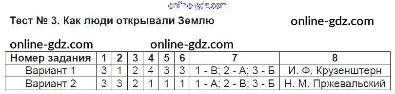 Готовые домашние задания по Географии за 5 класс Контрольно-измерительные материалы (КИМ) Жижина 2018 - Тесты 3