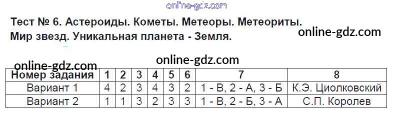 Готовые домашние задания по Географии за 5 класс Контрольно-измерительные материалы (КИМ) Жижина 2018 - Тесты 6