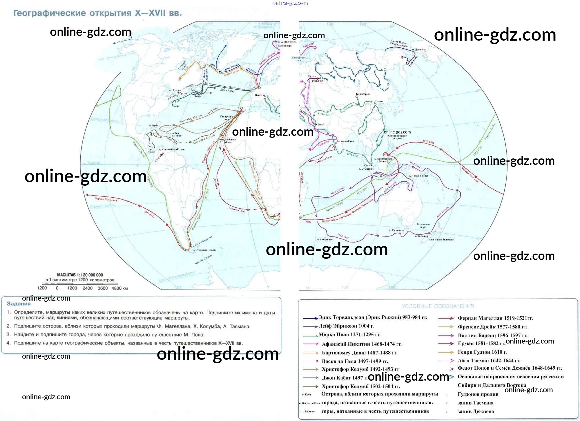 Готовые домашние задания по Географии за 5 класс Контурные карты Петрова, Кучеренко Полярная звезда 2021 - Страницы 2-3 Географические открытия X—XVII вв.