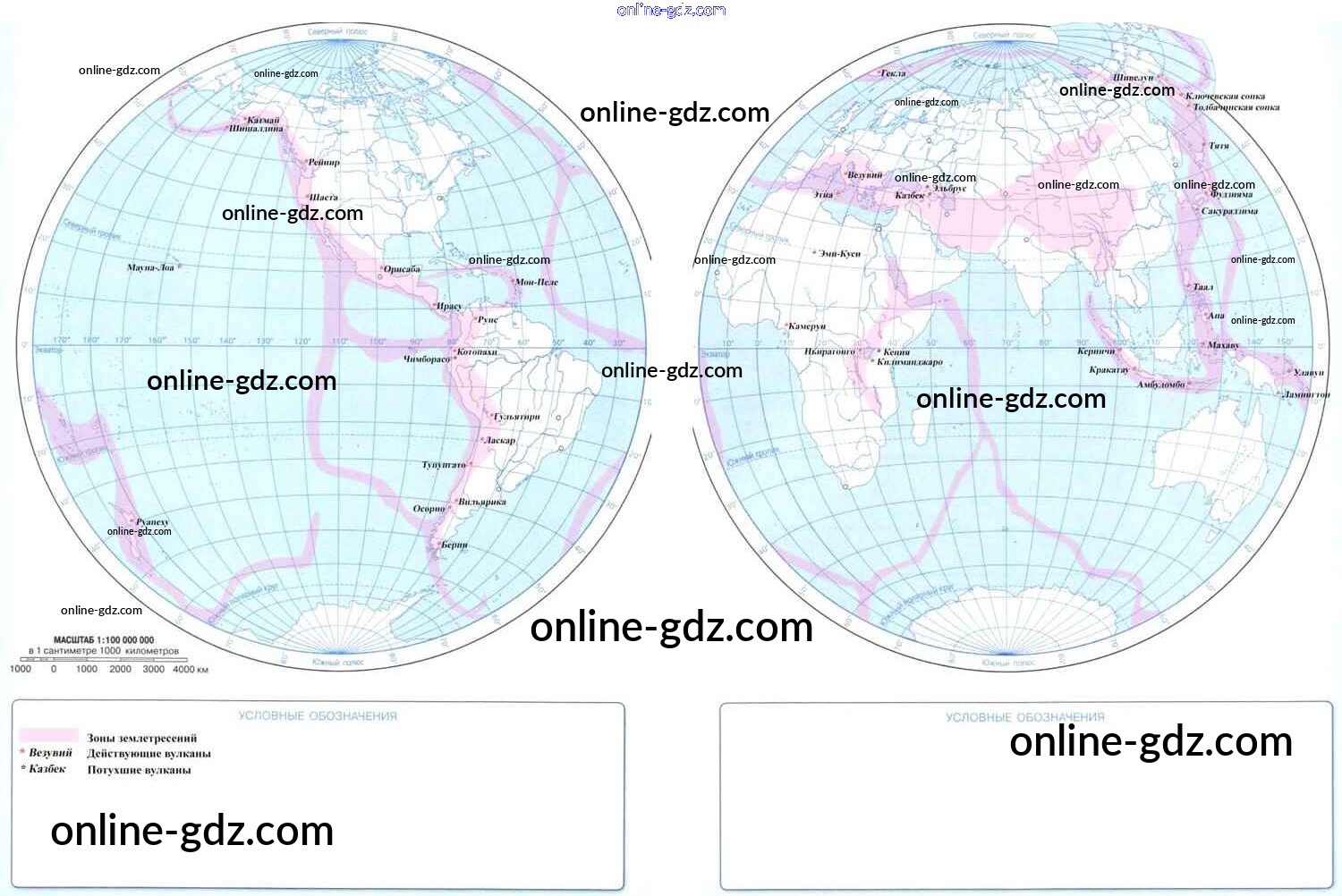 Готовые домашние задания по Географии за 5 класс Контурные карты Петрова, Кучеренко Полярная звезда 2021 - Страницы 8-9 Карта полушарий. Физическая карта