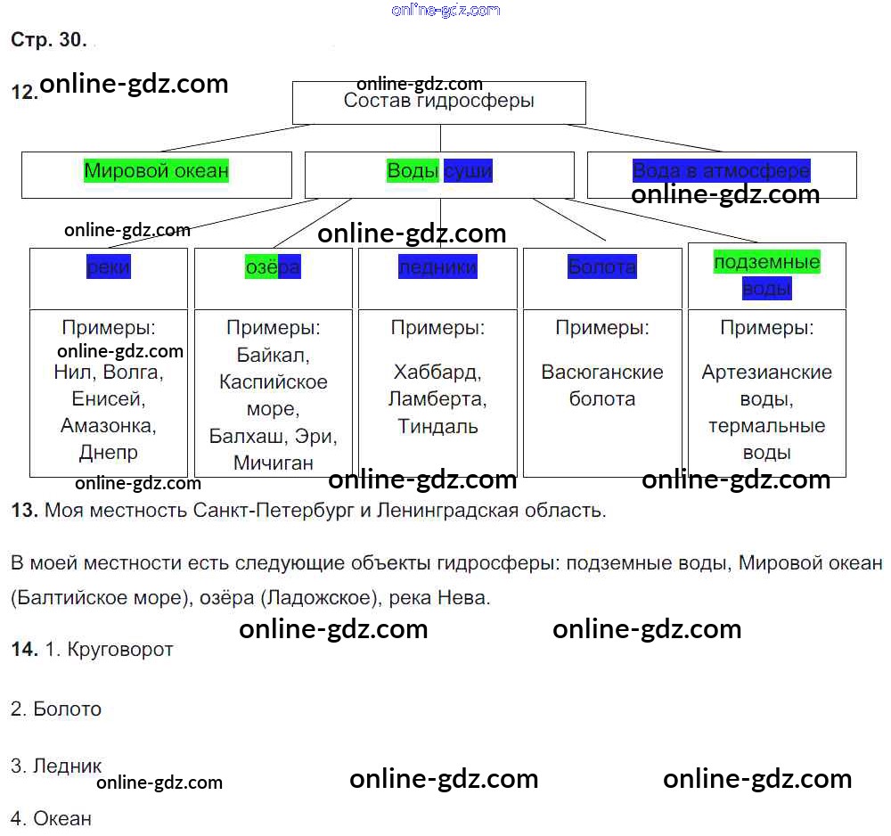 Готовые домашние задания по Географии за 5 класс Рабочая тетрадь Баринова, Суслов УМК 2015 - Страницы 30