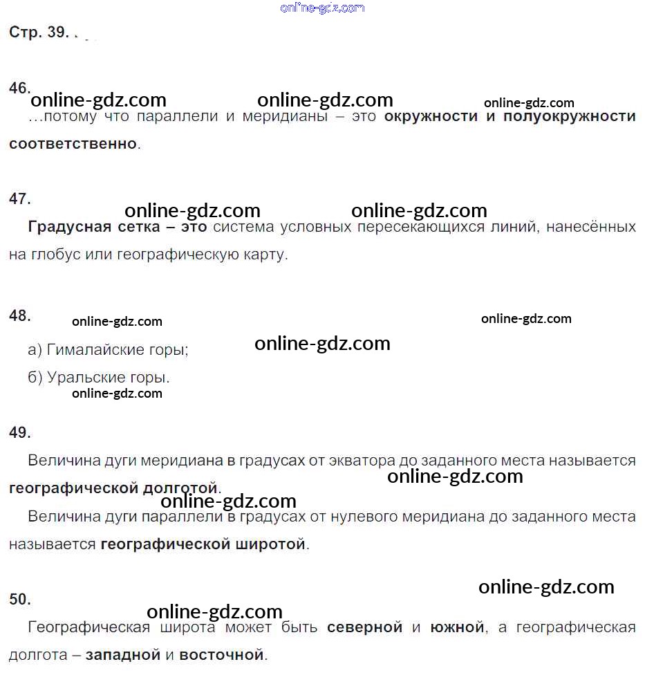 Готовые домашние задания по Географии за 5 класс Рабочая тетрадь Дронов, Савельева УМК 2016 - Страницы 39