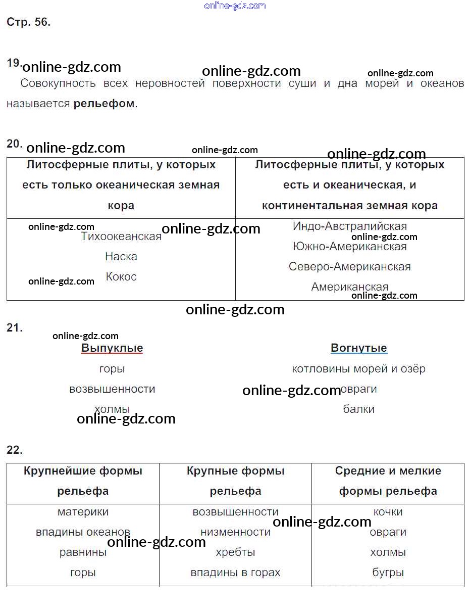 Готовые домашние задания по Географии за 5 класс Рабочая тетрадь Дронов, Савельева УМК 2016 - Страницы 56