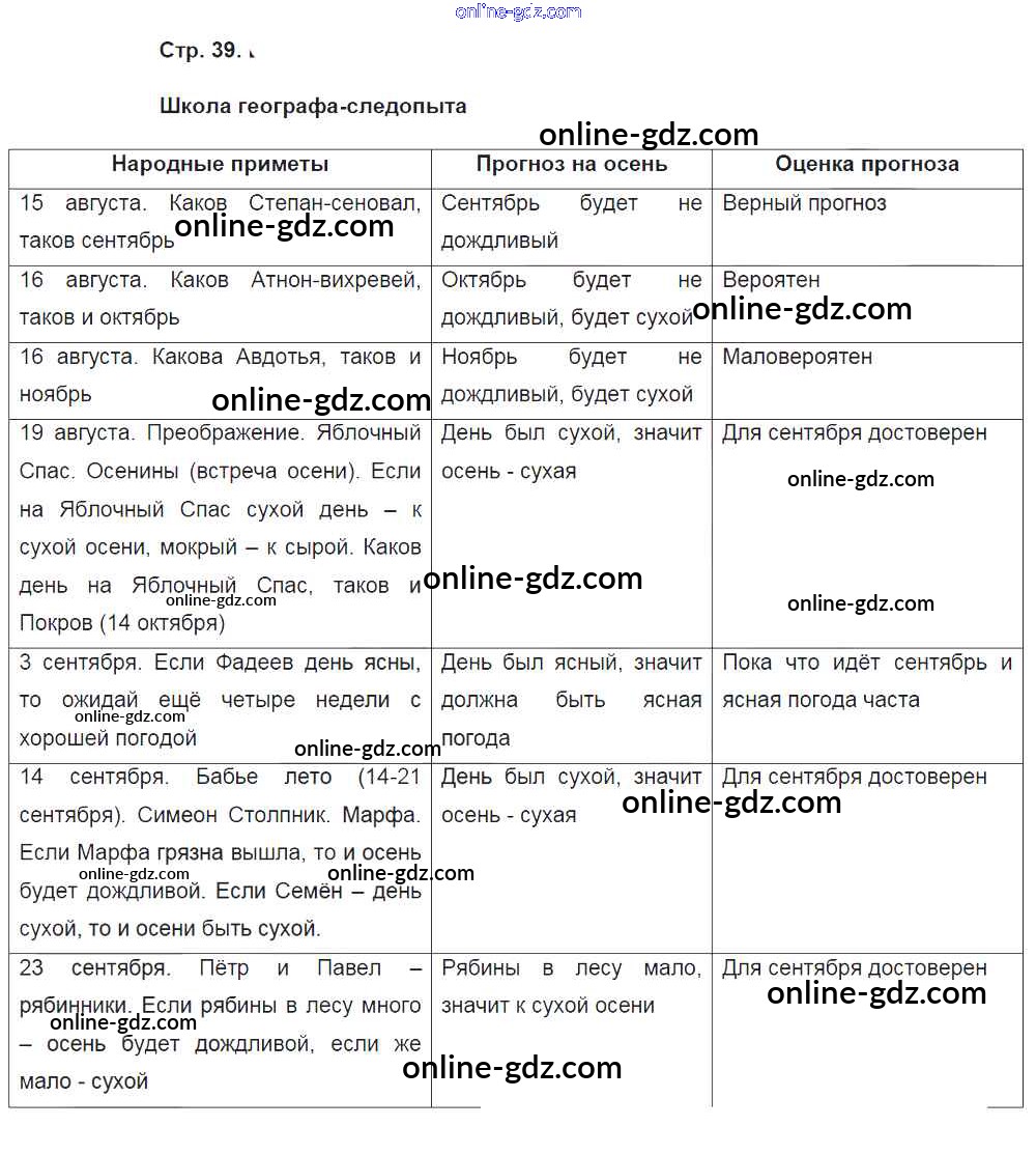 Готовые домашние задания по Географии за 5 класс Рабочая тетрадь Летягин Алгоритм успеха 2020 - Страницы 39
