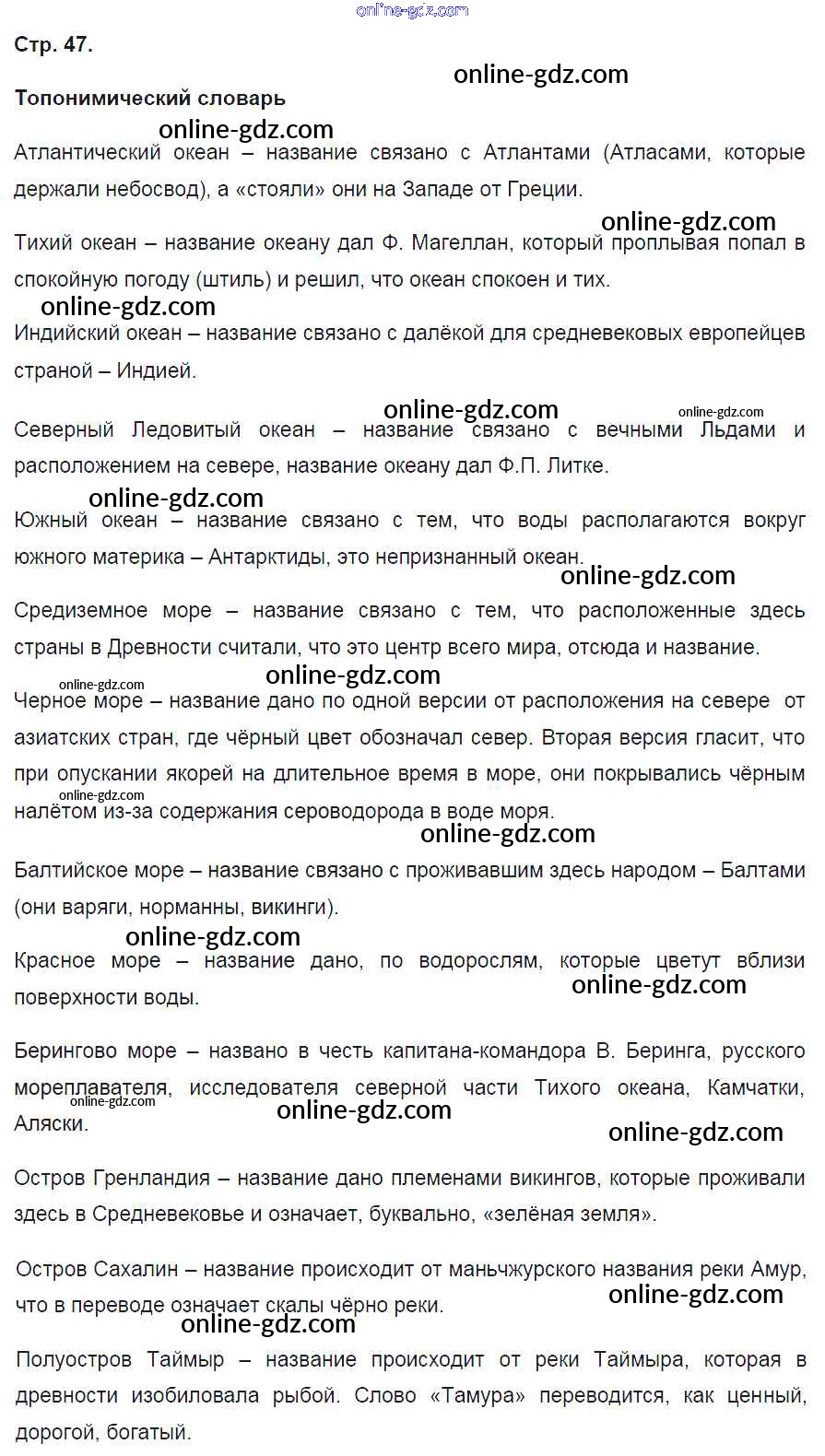 Готовые домашние задания по Географии за 5 класс Рабочая тетрадь Летягин Алгоритм успеха 2020 - Страницы 47